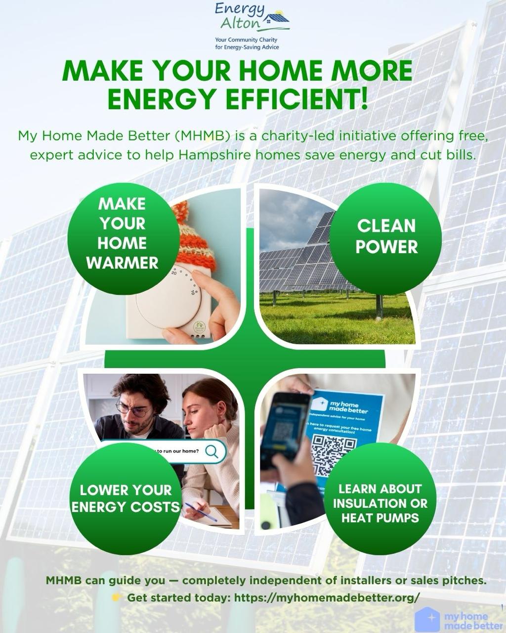 Energy Alton are working with the Environment Centre (tEC) based in Southampton, Petersfield Climate Action Network (PCAN) and Winchester Action on the Climate Crisis (WinACC) in a collective campaign to provide free energy advice to residents across the whole of Hampshire.